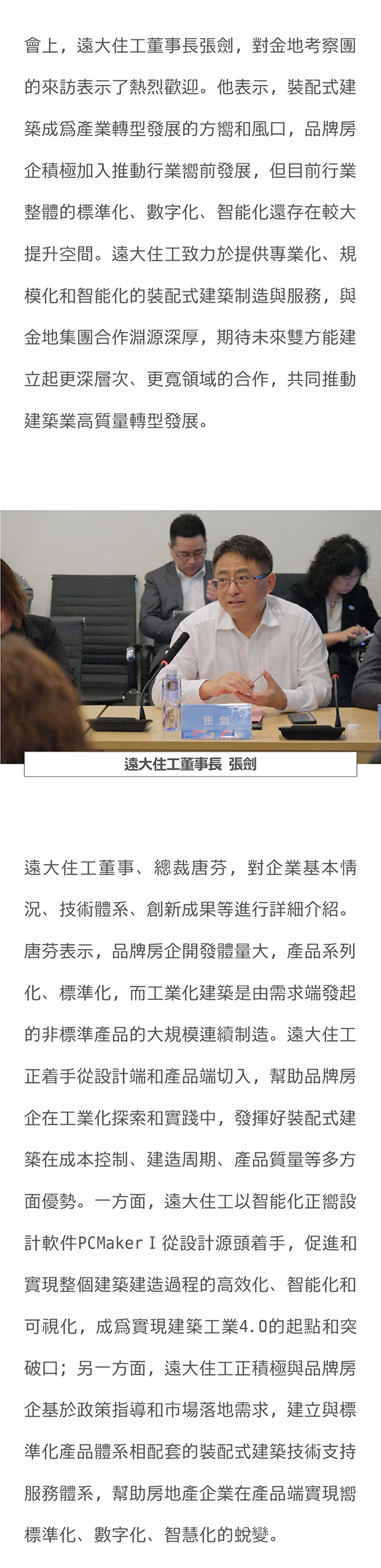 共話裝配式建築產(chǎn)品與設(shè)計標(biāo)準(zhǔn)升級 金地集團(tuán)產(chǎn)品管理部總經(jīng)理、金地研發(fā)院總經(jīng)理祝崢壹行走進(jìn)遠(yuǎn)大住工