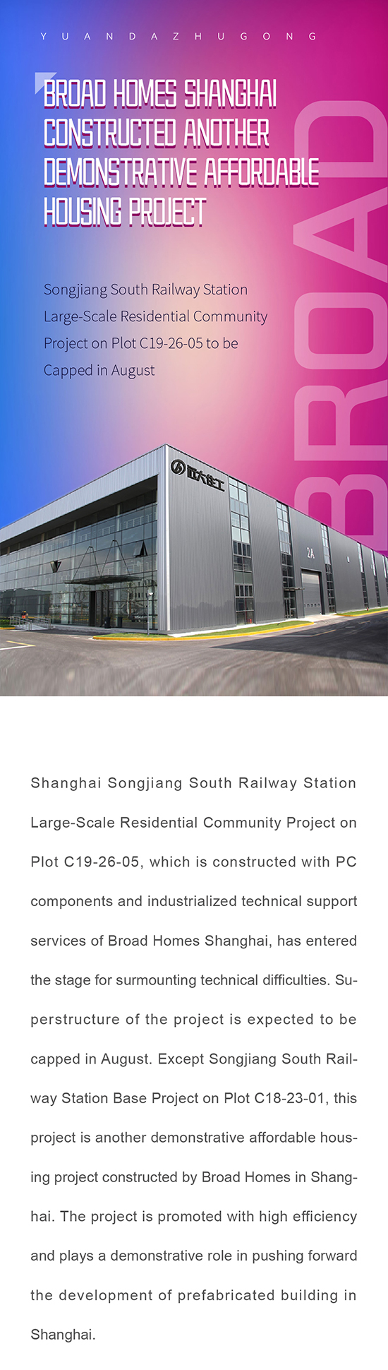 Broad Homes Shanghai Constructed Another Demonstrative Affordable Housing Project Songjiang South Railway Station Large-Scale Residential Community Project on Plot C19-26-05 to be Capped in August