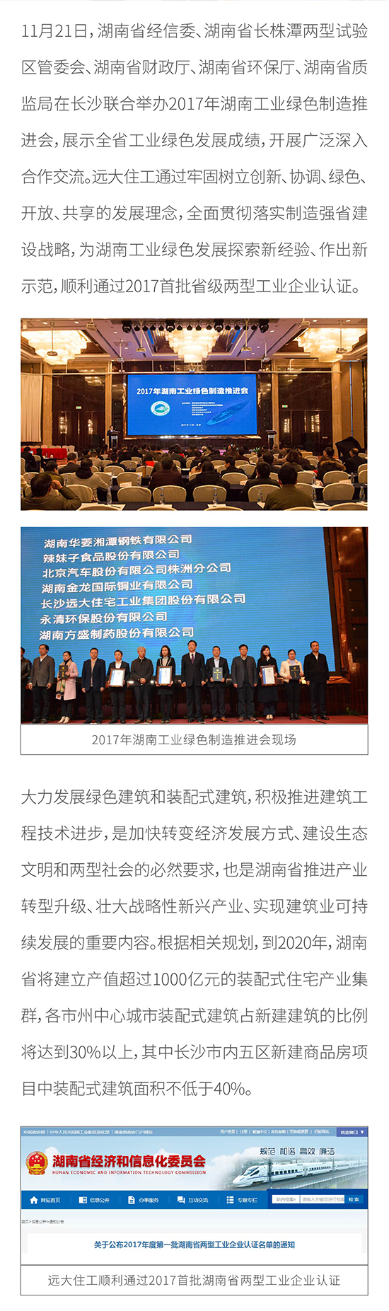 遠大住工順利通過2017首批湖南省兩型工業企業認證