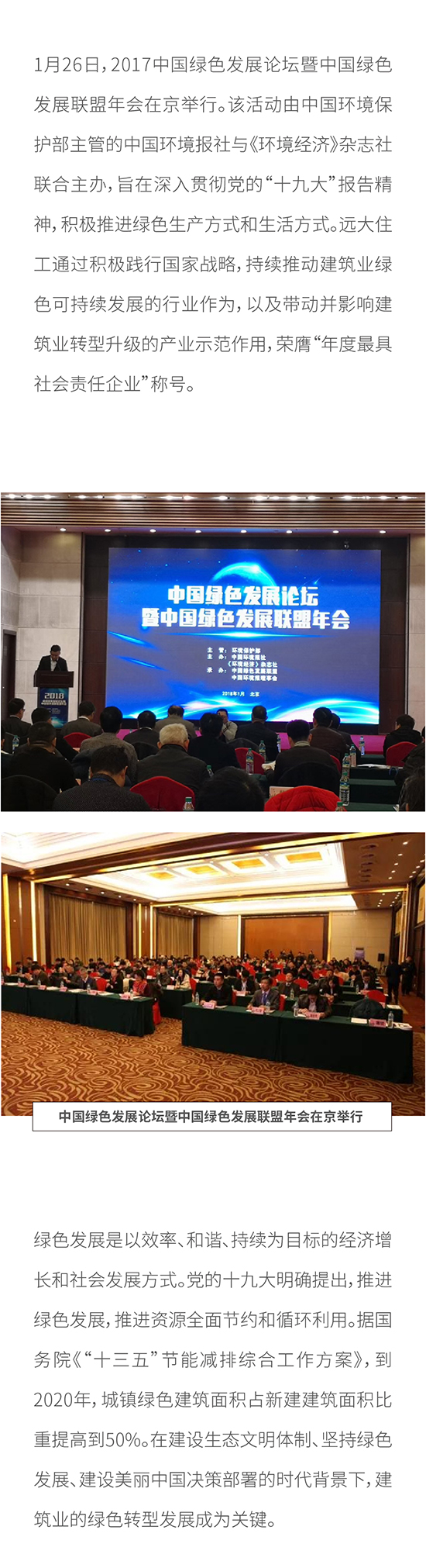 2017中國綠色發展論壇暨中國綠色發展聯盟年會在京召開 遠大住工榮膺“年度最具社會責任企業”