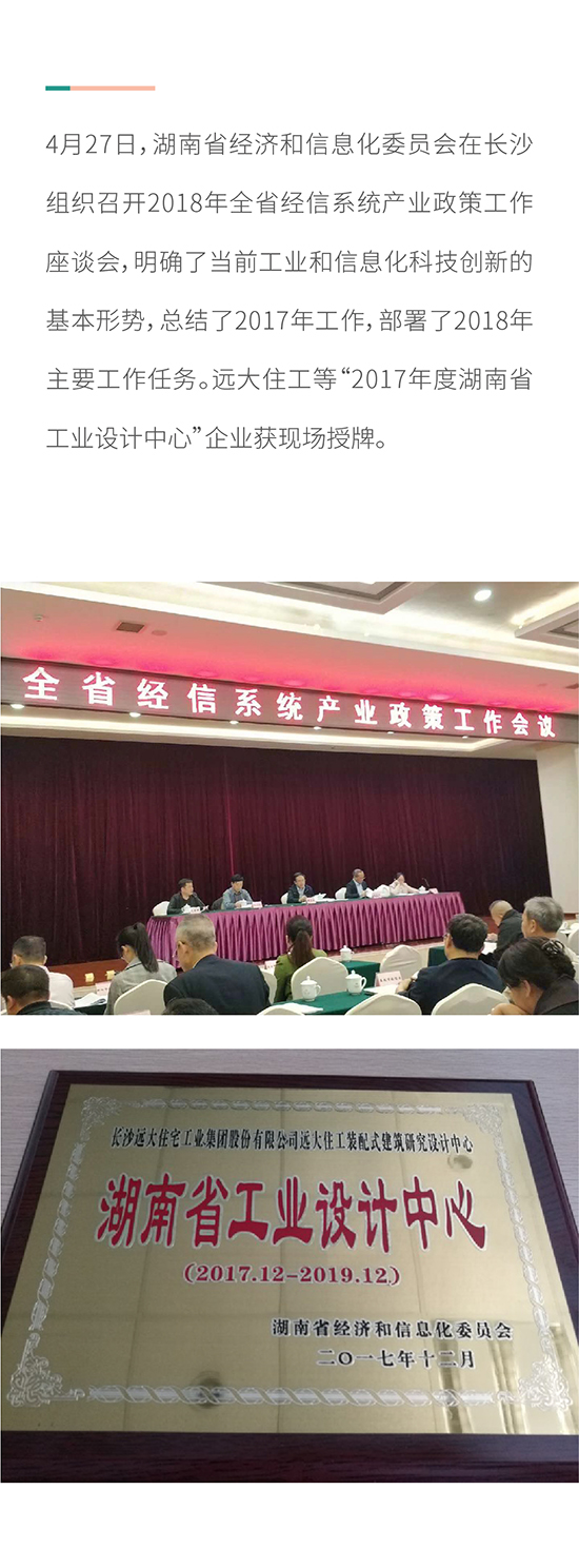 遠大住工獲授牌 “2017年度湖南省工業設計中心”