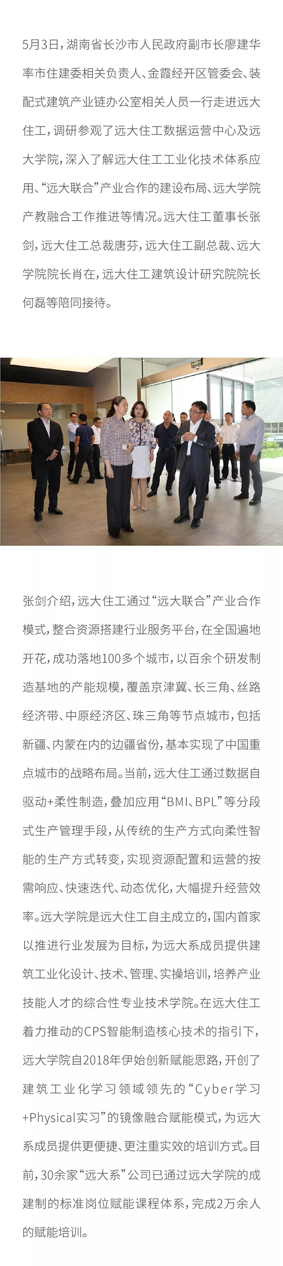 加快長沙市“兩基地三中心”建設 副市長廖建華一行走進遠大住工