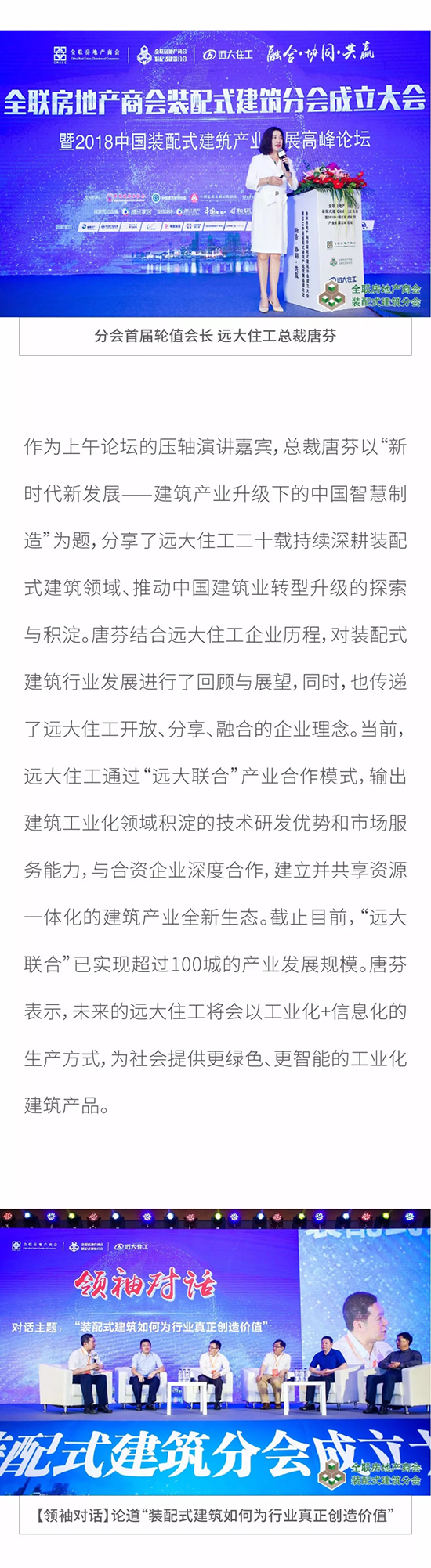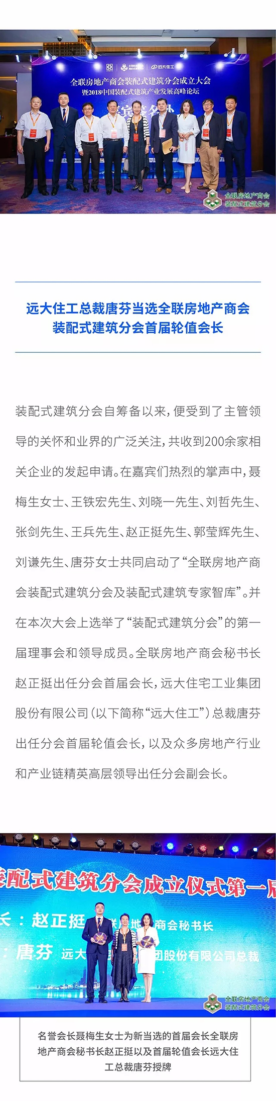 全聯房地產商會裝配式建筑分會成立大會盛大召開 遠大住工總裁唐芬當選首屆輪值會長