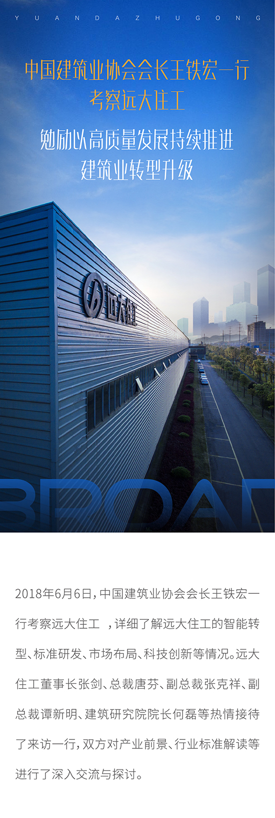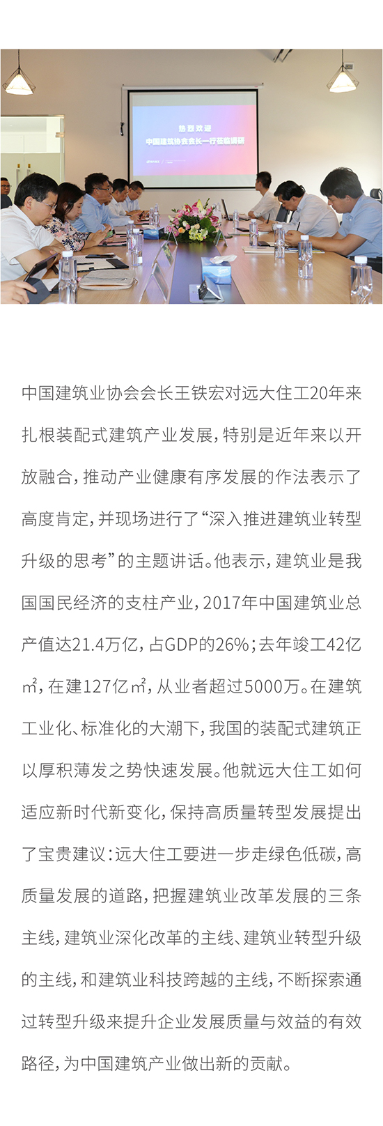 中國建筑業協會會長王鐵宏一行考察遠大住工 勉勵以高質量發展持續推進建筑業轉型升級