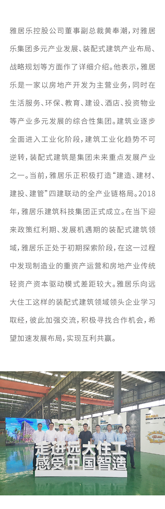 深化合作 共謀發(fā)展 雅居樂董事副總裁黃奉潮一行赴遠(yuǎn)大住工參觀考察