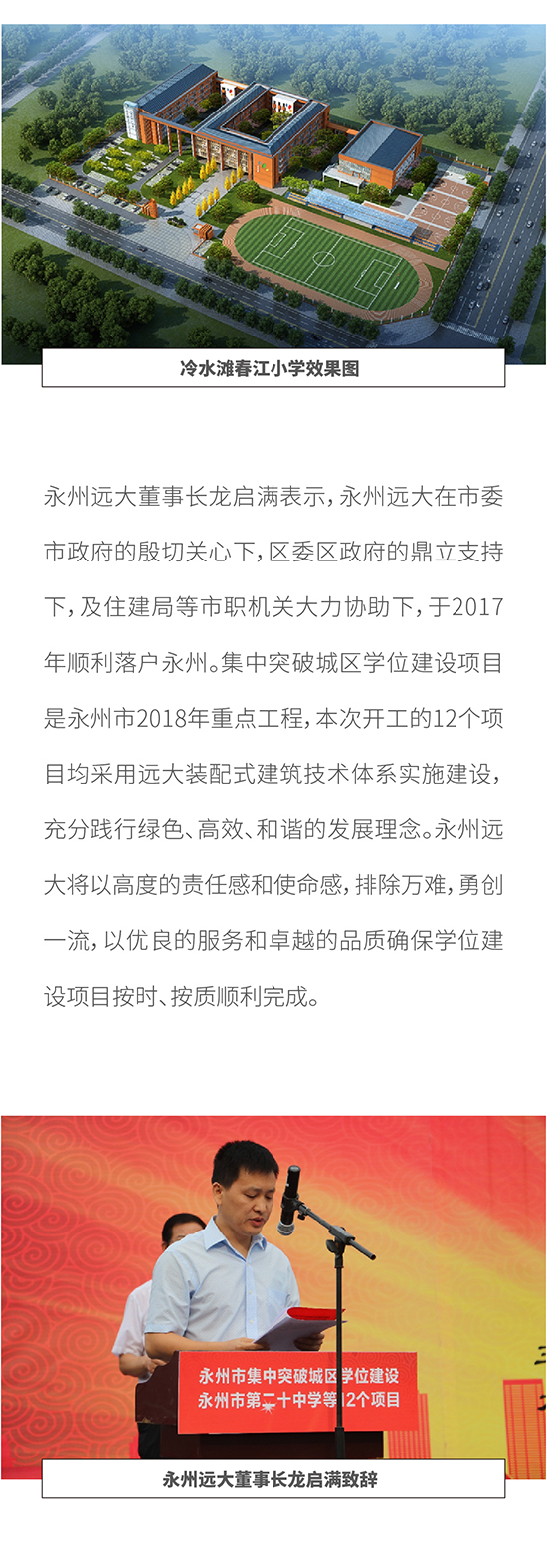 12所學校由永州遠大全部采用裝配式建筑技術建設 永州市集中突破城區學位建設項目開工儀式舉行