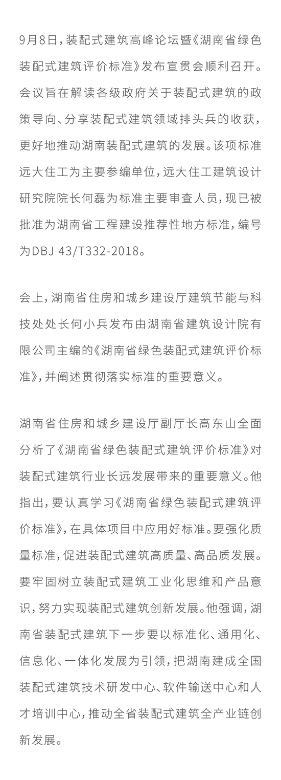 遠大住工參編《湖南省綠色裝配式建筑評價標準》正式發布