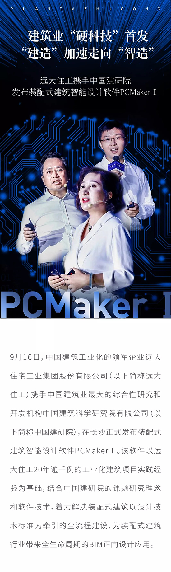 建筑業“硬科技”首發 “建造”加速走向“智造” 遠大住工攜手中國建研院發布裝配式建筑智能設計軟件PCMakerⅠ