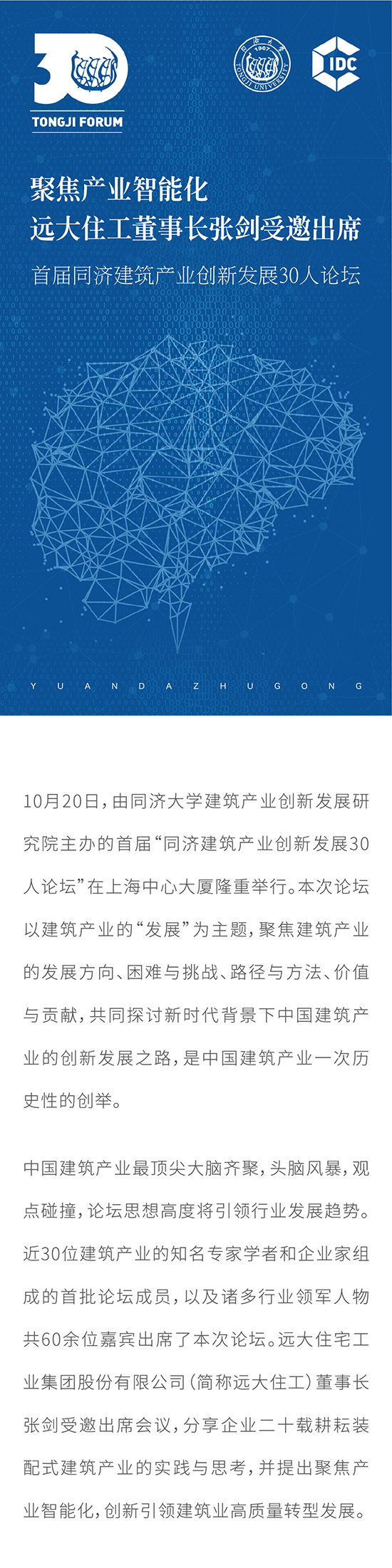 聚焦產(chǎn)業(yè)智能化 遠(yuǎn)大住工董事長(zhǎng)張劍受邀出席 首屆同濟(jì)建筑產(chǎn)業(yè)創(chuàng)新發(fā)展30人論壇