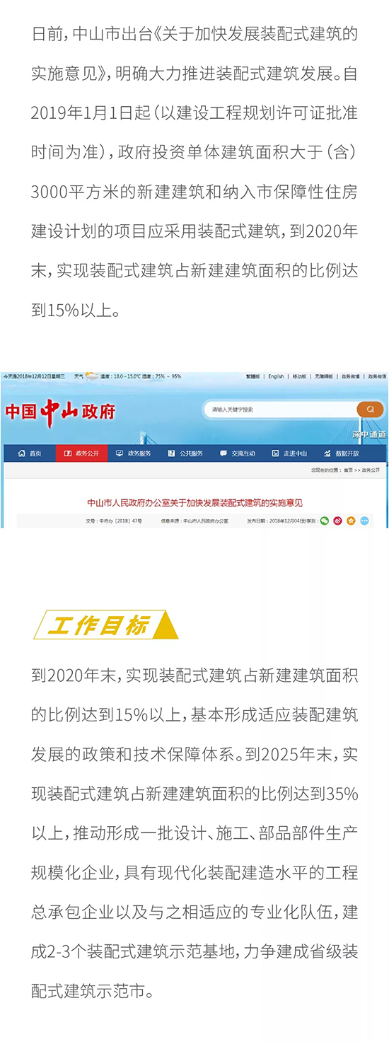 中山市出臺《關于加快發展裝配式建筑的實施意見》 到2020年末,實現裝配式建筑占新建建筑面積的比例達到15%以上