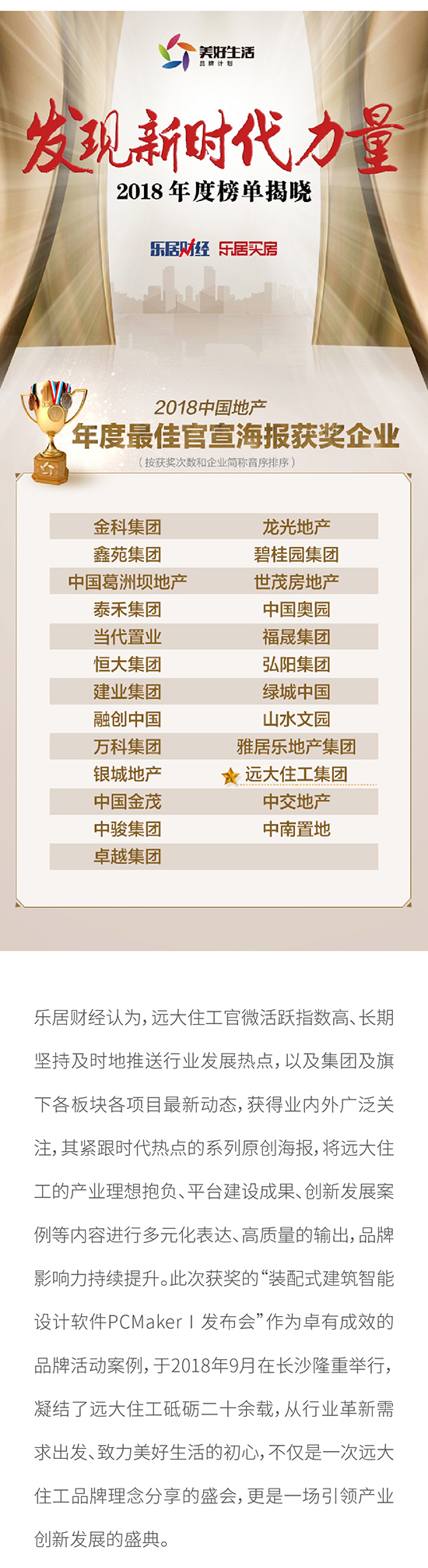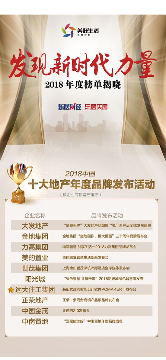 遠大住工品牌影響力持續提升 斬獲“2018中國十大地產年度品牌發布活動”等兩項大獎