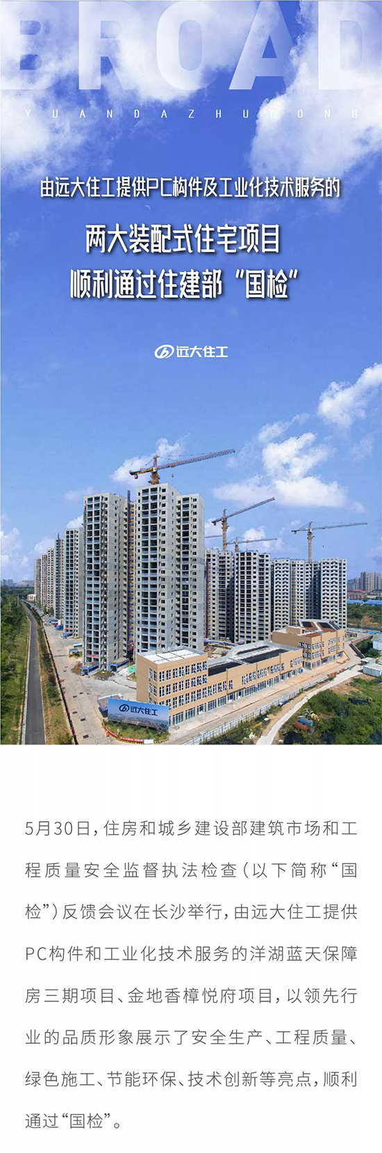 由遠大住工提供PC構件及工業化技術服務的兩大裝配式住宅項目順利通過住建部“國檢”