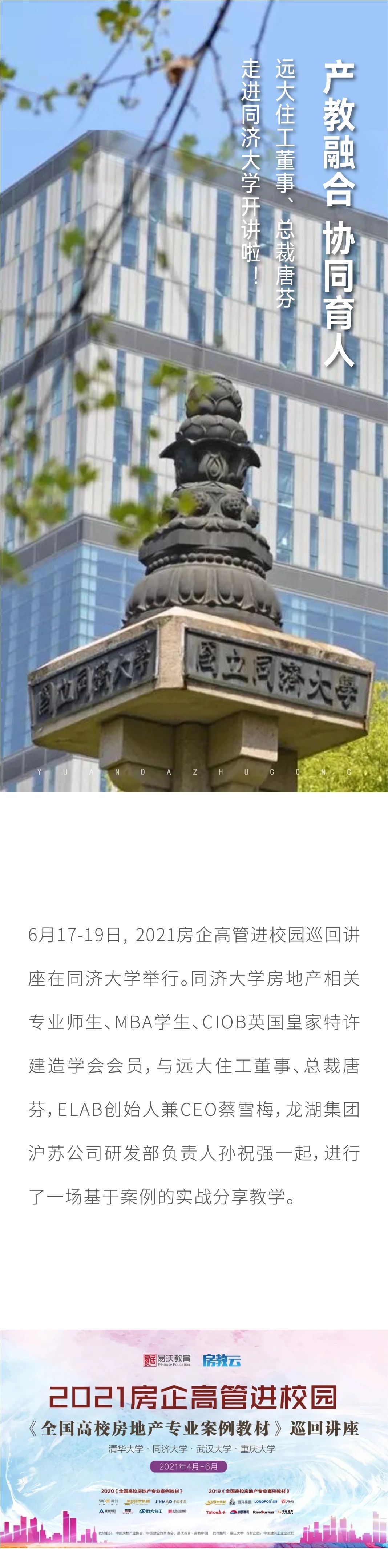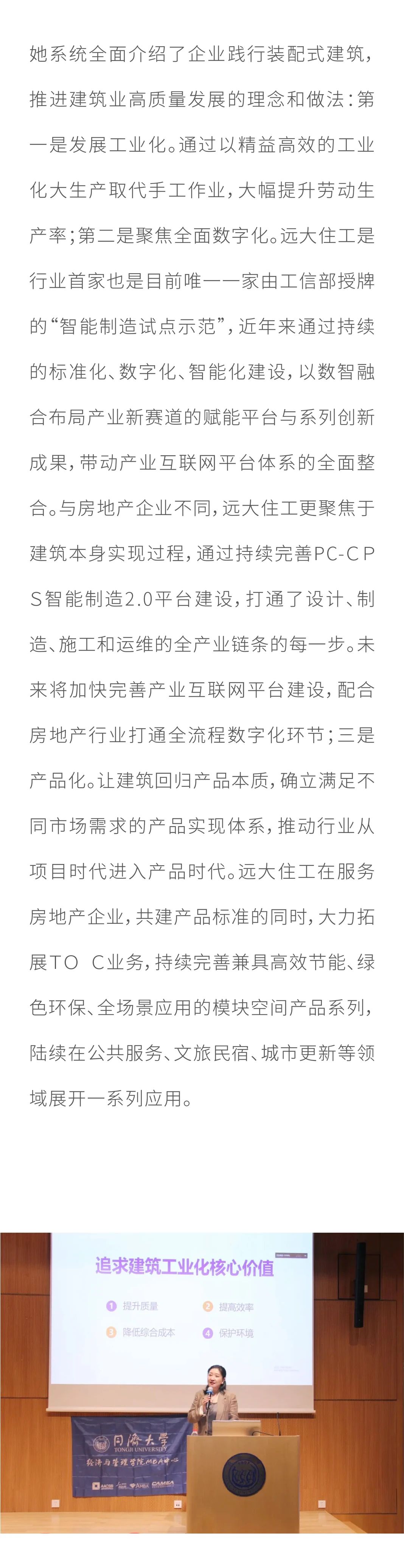 產教融合 協同育人 遠大住工董事、總裁唐芬走進同濟大學開講啦!